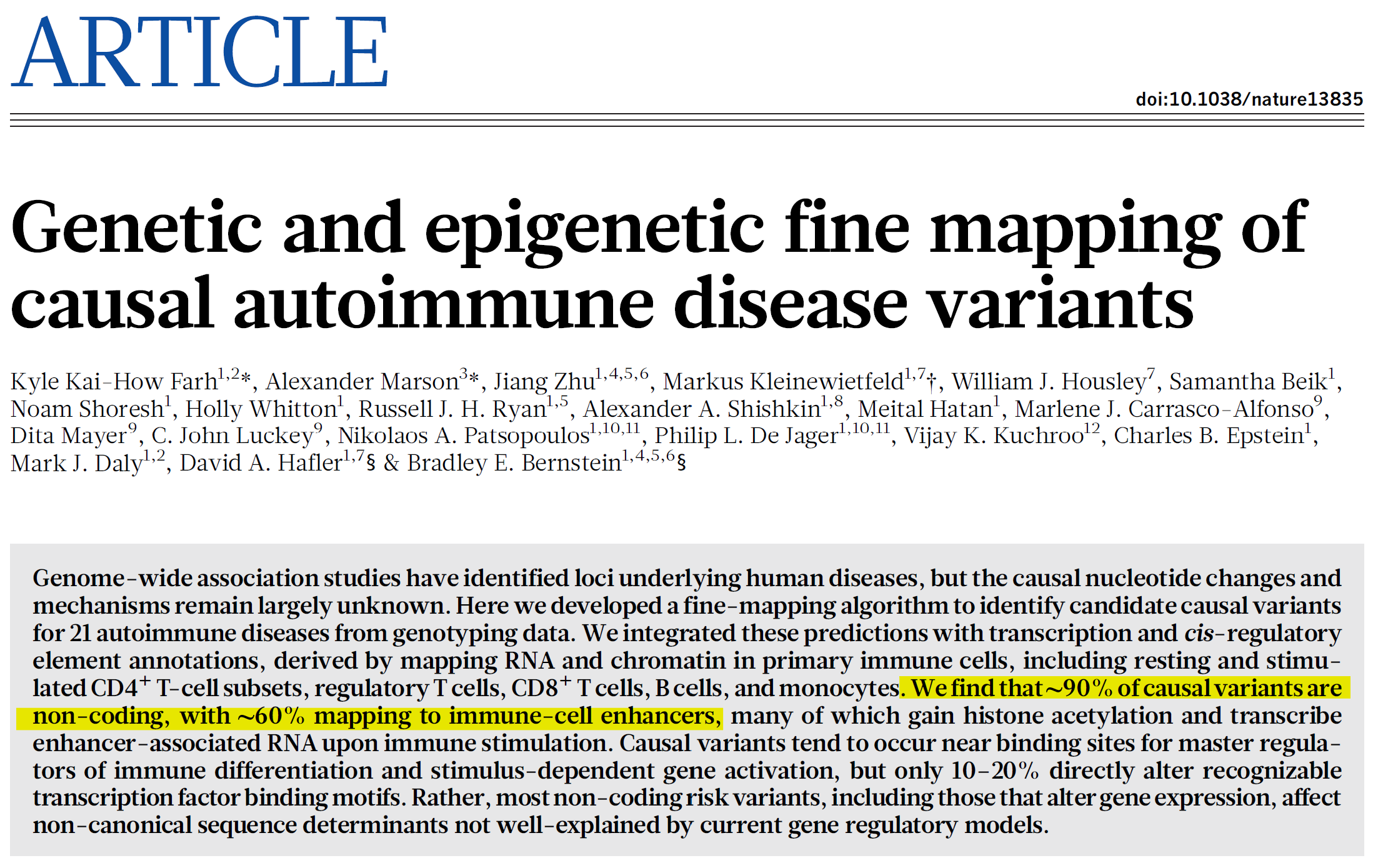 От 80 до 90% геномных вариантов, ассоциированных с болезнями, находится в некодирующих районах.